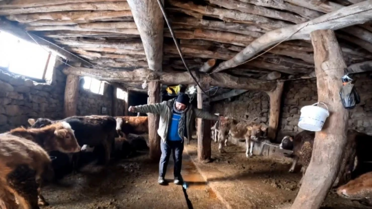 Erzincan'da besici Baki Kaya, ineklerine 'Dilber' şarkısını dinleterek süt verimini artırıyor.