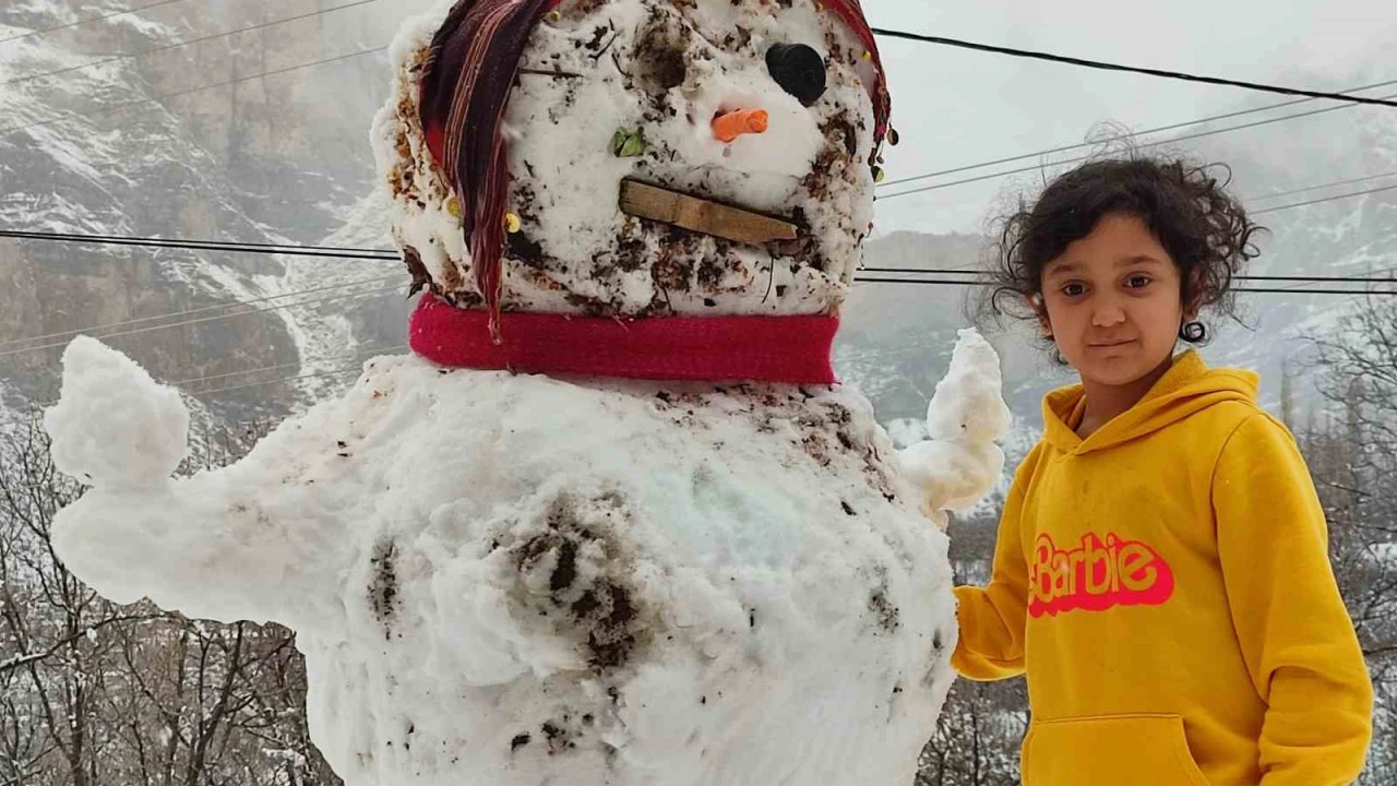 Erzurum'un Uzundere ilçesinde beklenen kar yağışı nihayet gerçekleşti. İlçedeki çocuklar, uzun zamandır bekledikleri karı görünce sevinçle dışarı çıkarak bu kez kardan kadın yaptı.