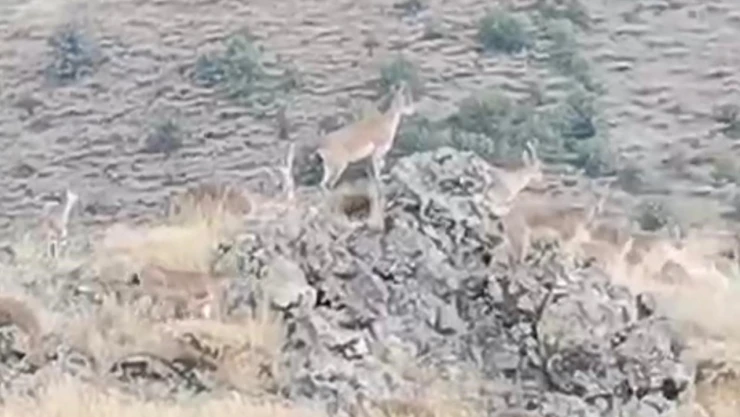 Malatya'da nesli tehlike altında olan yaban keçileri, sürü halinde yol kenarında görüntülendi.
