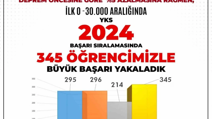 6 Şubat depreminin ardından ildeki öğrenci sayısı önceki yıllara göre yüzde 5 azalmasına rağmen ilin YKS başarı grafiği, geçmiş yıllara göre büyük artış gösterdi.