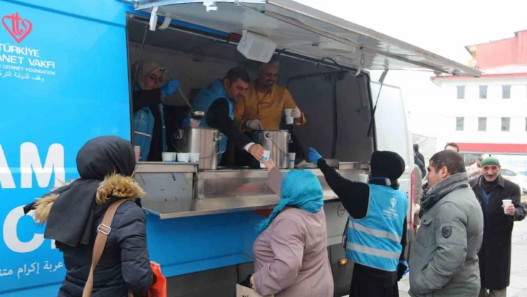 TDV Genel Merkezinin koordinesinde yürütülen proje kapsamında, TDV mobil hizmet aracıyla Cumhuriyet Caddesi’nde kurulan stantta vatandaşlara sıcak çorba ikram edildi. Etkinliğe katılan Ağrı İl Müftüsü ve TDV Ağrı Şube Başkanı Necati Şafak, yaptığı açıklamada, din görevlileri ve vakıf gönüllüleriyle birlikte vatandaşlarla buluşmaya devam ettiklerini söyledi. Şafak, "Bugün soğuk kış gününde vatandaşlarımızın hem içini hem de gönüllerini ısıtmak amacıyla çorba dağıttık. Din görevlilerimiz ile tanışıp gönlüne girmediğimiz kimse kalmamalı diyerek her zaman sahada vatandaşlarımızla birlikte olacağız" dedi.