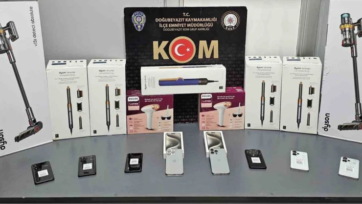 Ağrı Valiliği tarafından yapılan açıklamaya göre, İl Emniyet Müdürlüğü Kaçakçılık ve Organize Suçlarla Mücadele (KOM) Şube Müdürlüğü ekiplerince yürütülen çalışmalar kapsamında, Doğubayazıt ilçesinde bir operasyon gerçekleştirildi. Operasyonda, piyasa değeri yaklaşık 500 bin TL olan 8 adet çeşitli markalarda cep telefonu, 5 adet saç şekillendirici, 2 adet dikey süpürge ve 2 adet lazer epilasyon cihazı ele geçirildi. Açıklamada, kaçakçılıkla mücadelenin kararlılıkla devam edeceği vurgulandı.
