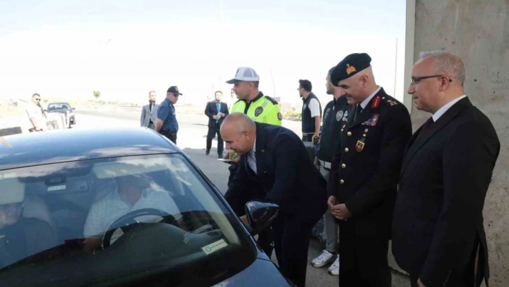Ağrı Valisi Mustafa Koç, Kurban Bayramı öncesi trafik kazalarında emniyet kemerinin önemine dikkati çekmek için polislerle beraber trafik denetimi yaptı.