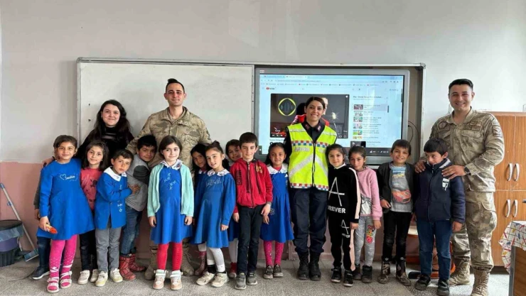 Ağrı'da, jandarma ekipleri bayram tatili öncesi minikleri okulunda ziyaret ederek trafik eğitimi verdi.