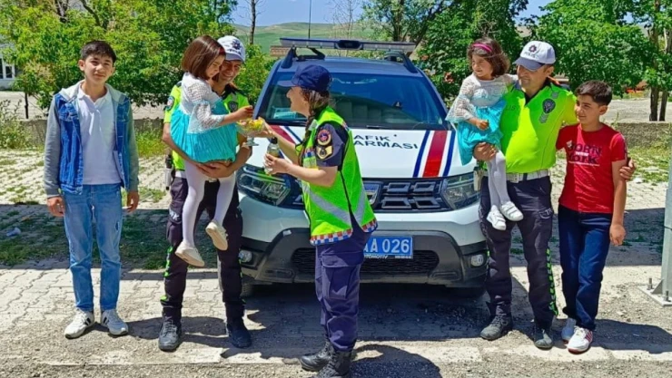 Ağrı'da jandarmadan bayram trafiğinde çocuklara çikolatalı sürpriz