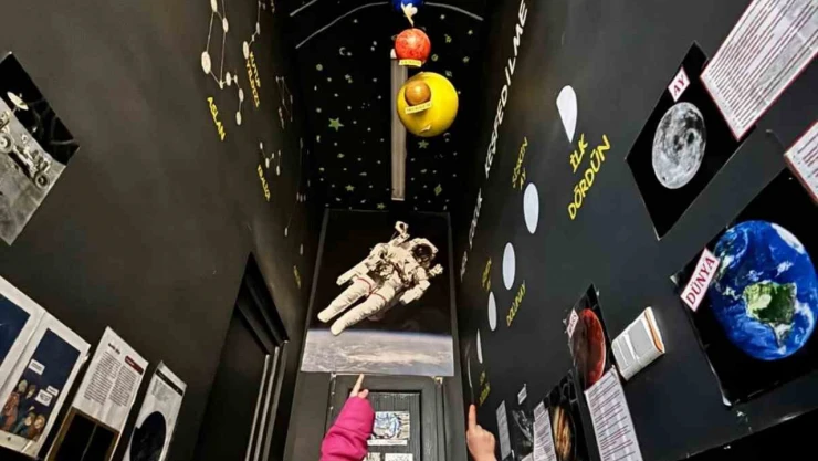 Ağrı’nın Tutak ilçesindeki Soğukpınar İlk ve Ortaokulu, öğrencilerin uzay bilimine ilgisini artırmak için okul koridorunu uzay sokağına dönüştürdü.