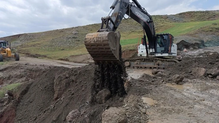 Ağrı'da sel felaketinden zarar gören grup köy yolunda onarım çalışmaları başladı