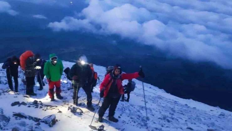 Dünyanın birçok ülkesinden ve Türkiye’nin farklı bölgelerinden gelen dağcılar, Doğubayazıt’ta hazırlıklarını tamamlayarak tırmanışa geçti. 4 bin 200 rakımda kamp alanında aniden bastıran yoğun kar yağışı ve fırtına dağcıların tırmanışını zorlaştırmasına rağmen zirveyi başarıyla tamamladı.