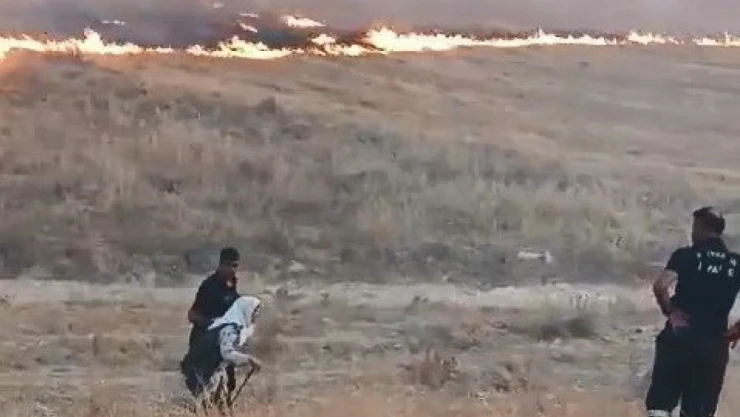 Adıyaman'da, çıkan anız yangınında alevler arasında kalan yaşlı kadın itfaiye ekipleri tarafından kurtarıldı.