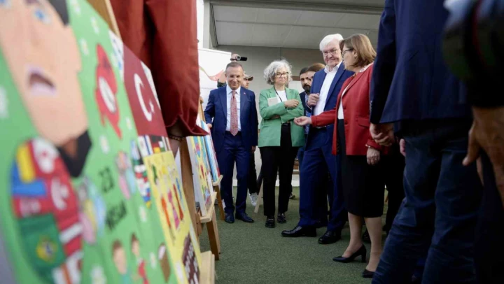 Almanya Cumhurbaşkanı Frank-Walter Steinmeier, Gaziantep'in Nurdağı ilçesinde depremzedelerle bir araya gelerek resim sergi alanını gezdi.