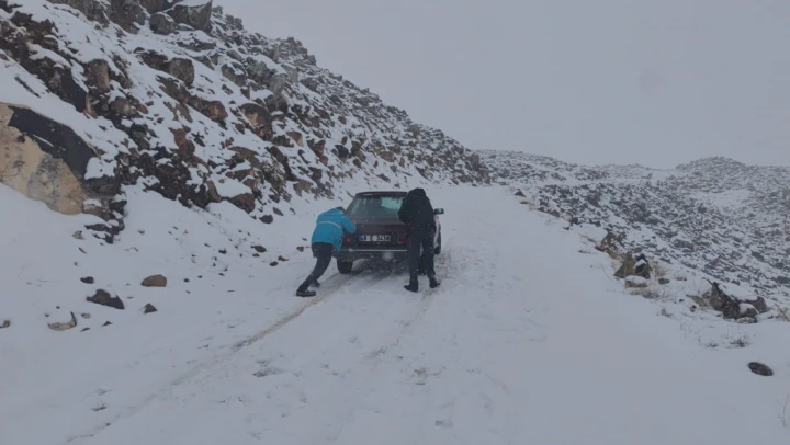 Bitlis'in Adilcevaz ilçesinde yoğun kar yağışı sürücülere zor anlar yaşattı.