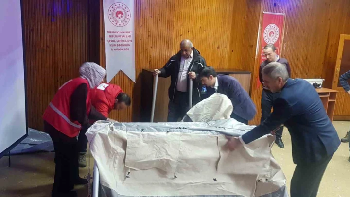 Ülkemizde son yıllarda meydana gelen depremler başta olmak üzere afetlere yönelik bilinci artırılması için kurumların çalışması devam ediyor. Özellikle Kahramanmaraş merkezli depremlerle birlikte toplumda meydana gelen hassasiyetler aynı zamanda deprem sonrası ortaya konulacak hareket tarzları ve çalışmaları da sıkça gündeme getiriyor. Erzurum Çevre, Şehircilik ve İklim Değişikliği İl Müdürlüğü bu amaçla Türk Kızılay Erzurum Afet Müdahale Merkezi Müdürlüğü'nden bir eğitim aldı. Kızılay Afet Müdahale Uzmanları Ayşe Karabulut ve Ömer Faruk edir tarafından İl Müdürlüğ personellerine 'Afetler ve Korunma Bilinci, Afet Malzemelerini Tanıma ve Çadır Kurma' eğitimi verildi. Eğitim hem teorik hem de pratik olarak yapıldı.