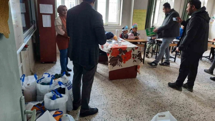 Adıyaman Hüsnü Özyeğin Anadolu Lisesi öğrencileri Kahta Çaybaşı İlköğretim Okulu öğrencilerine kırtasiye giysi yardımında bulundu.