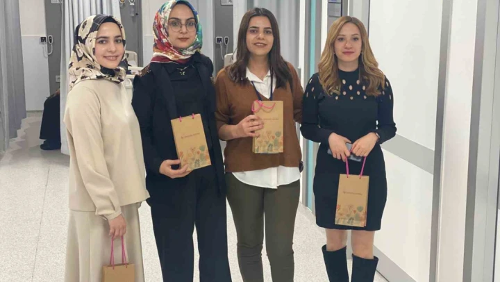 Kadınlara sağlık ve mutluluk temennisinde bulunan hastane yönetimi, kadın personellerine de çiçek vermeyi ihmal etmedi.