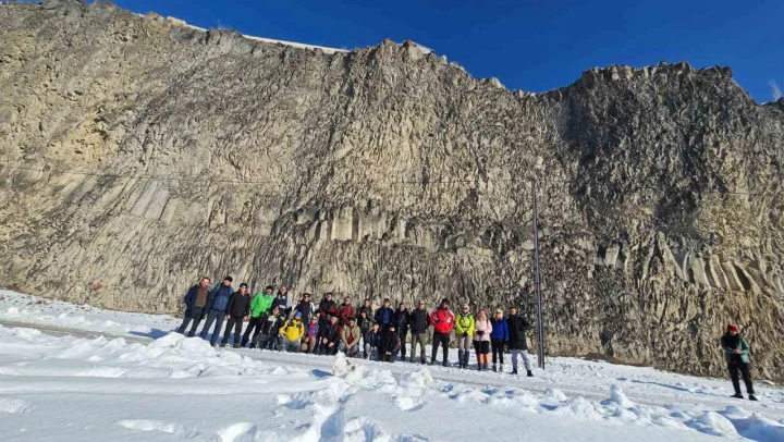 Bazid Dağcılık Kulübü üyeleri, küresel ısınmaya dikkat çekmek amasıyla Murat Kanyonu'nda yürüyüş yaptı.