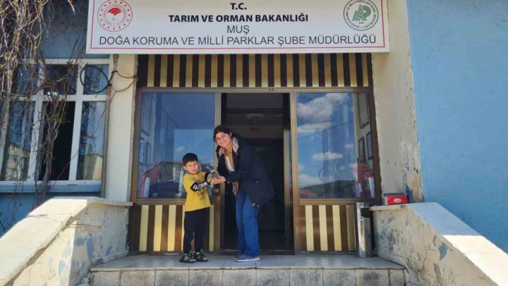 Muş'ta ailesi ile gezintiye çıkan bir çocuk, doğada bulduğu kulaklı yavru orman baykuşunu Doğa Koruma ve Milli Parklar Muş Şube Müdürlüğüne teslim etti.