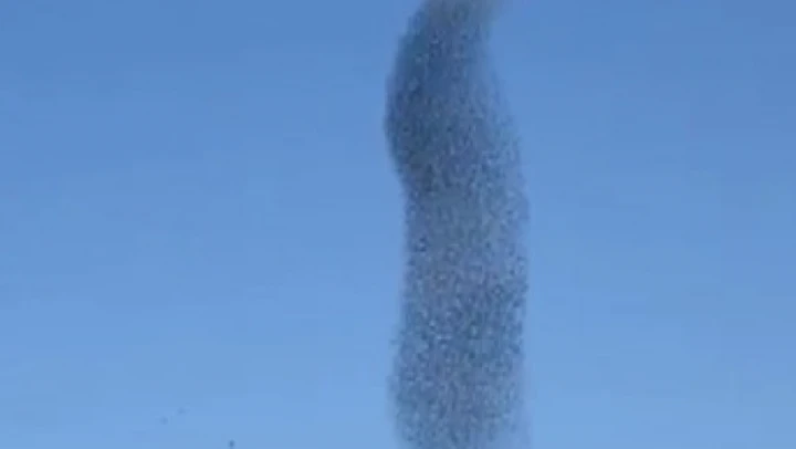 Sığırcık kuşlarının gökyüzündeki dansı hayran bıraktı