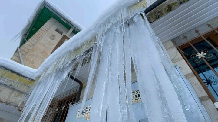 İlçede yaklaşık bir haftadır etkili olan kar yağışı, yerini dondurucu soğuklara bıraktı. Gece saatlerinde sıfırın altında 12 dereceye kadar düşen hava sıcaklığı, çatı ve saçaklarda buz sarkıtlarının oluşmasına yol açtı. Apartman ve iş yeri çatılarında oluşan sarkıtlar tehlike oluştururken, dondurucu soğuklar da hayatı olumsuz yönde etkilemeye devam ediyor. İlçede bir caminin çatılarında oluşan buz sarkıtları 2 metreyi bulurken, vatandaşlar ise çatılarda biriken kar ve buz sarkıtlarını düşürerek muhtemel yaralanmaların önüne geçmeye çalışıyor.