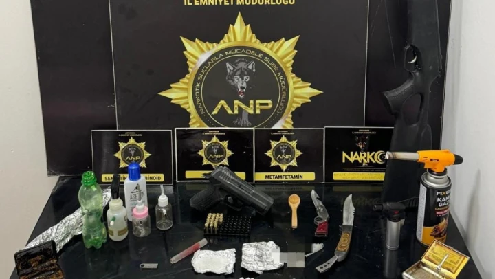 Edinilen bilgilere göre, Narkotik Suçlarla Mücadele Şube Müdürlüğü ekiplerince yapılan çalışmalar neticesinde Y.E.Ç., isimli şahısın adresine operasyon düzenlendi. Adreste yapılan aramalarda 32.85 gram sentetik maddesi, 6 adet uyuşturucu kullanma aparatı, 1 adet uyuşturucu paketlemede kullanıldığı değerlendirilen aliminyum folyo, 1 adet ruhsatsız tabanca, 2 adet bıçak, 1 adet havalı tüfek, 1 adet çözelti için kullanıldığı değerlendirilen aseton, uyuşturucu madde ticaretinden elde edildiği değerlendirilen 33.100 TL para ele geçirildi. Gözaltına alınan ve emniyette işlemleri tamamlanan şahıs, sev edildiği adliyede çıkarıldığı mahkemece tutuklanarak cezaevine gönderildi.