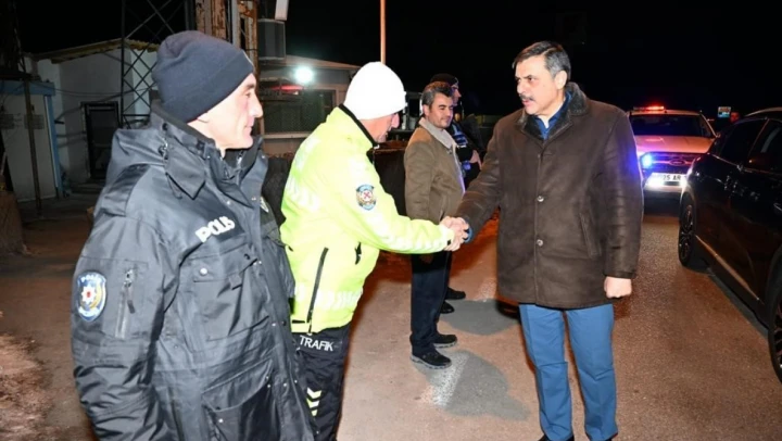Erzurum Valisi Mustafa Çiftçi, 2023 yılının son saatlerinde, vatandaşların huzuru ve güvenliği ile can ve mal emniyetini sağlayan kolluk kuvvetlerini nöbet yerlerinde ziyaret etti.