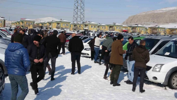 Van'da soğuk havaya rağmen açık oto pazarı araçlarla doldu