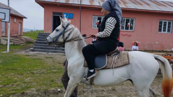 Muş'un Varto ilçesine bağlı köy okulunda yapılan atlı ve eşekli gösteriyle 23 Nisan Ulusal Egemenlik ve Çocuk Bayramı kutlandı.