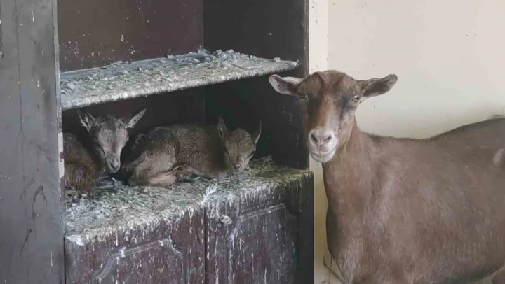 Hakkari'nin Çukurca ilçesinde bitkin halde bulunarak Van'da koruma altına alınan yavru yaban keçilerine yerli keçi annelik yapıyor.