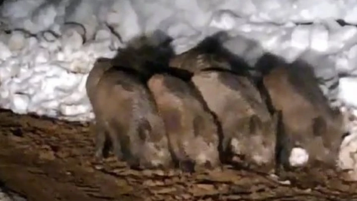 Etkili olan kar yağışı nedeniyle yaban hayvanları yiyecek bulmakta zorlanıyor. Hizan ilçesine bağlı Çayır köyü bölgesinde cep telefonuyla görüntülenen domuz sürüsünün karlı bölgeden toprak yola inerek yiyecek aradıkları görüldü.