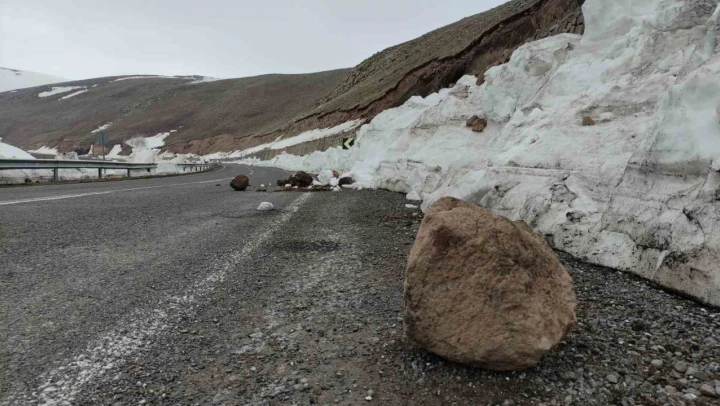 Yetkililer, bölgede etkili olan sağanak ve karın erimesi nedeniyle sürücüleri heyelan tehlikesine karşı uyardı.
