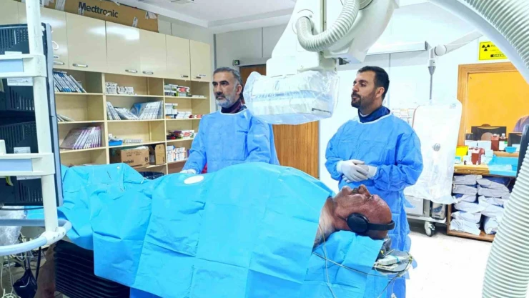 Van Eğitim ve Araştırma Hastanesi bünyesindeki Kalp Merkezinde, anjiyo sırasında hastaların kaygı ve strese kapılmamaları için müzik dinletiliyor.