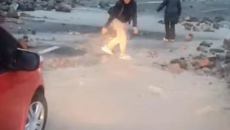 Ardahan’da yaklaşık 3 gündür etkili olan sağanak yağış hayatı olumsuz etkiliyor. Şiddetli sağanak yağış nedeniyle Ardahan’ı Karadeniz bölgesine bağlayan Ardahan-Ardanuç kara yolunun bazı noktalarına yükseklerden kopan kaya parçaları düştü. Sürücüler irili ufaklı kaya parçalarını, kendi imkanlarıyla temizleyerek yolun trafiğe açılmasını sağladı.