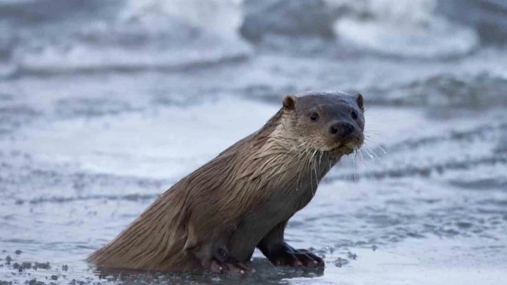 Ardahan’da nesli tükenmekte olan su samuru, buz tutan Kula Nehri üzerinde görüntülendi.
