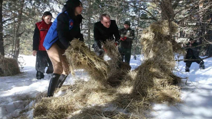 Ardahan'da yaban hayvanları için doğaya yem bırakıldı