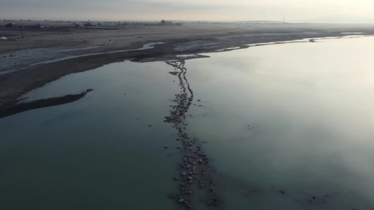 BİTLİS (İHA) – Bitlis'in Adilcevaz ilçesi sınırlarında bulunan ve 'kuş cenneti' olarak bilinen Arin Gölü'nün çekilmesiyle liman kalıntıları ortaya çıktı.