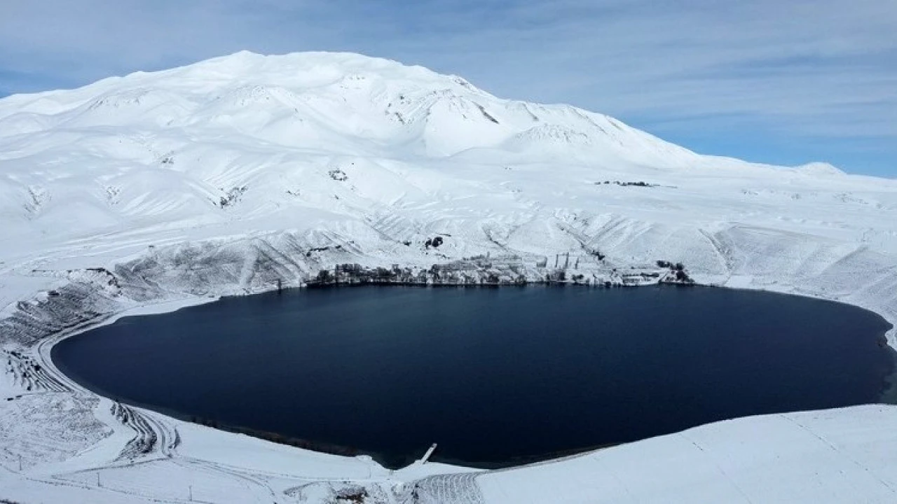 Bitlis'in Adilcevaz ilçesinde bulunan Aygır Gölü yeniden beyaza büründü.