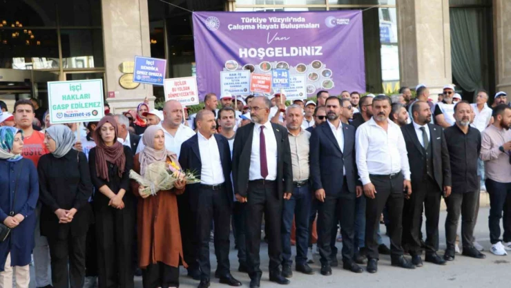 Van’da bazı belediyelerce işten çıkarılan ve geri dönüş için İpekyolu Belediyesi önünde eylem yapan işçiler, Çalışma ve Sosyal Güvenlik Bakanı Vedat Işıkhan’ın toplantı yapacağı Elite World Van Otel önüne kadar yürüdü. ’İşçiler asla pes etmeyecek’, ’Hak-İş nerede biz oradayız’ sloganları atan işçiler, Bakan Işıkhan’ı çiçeklerle karşıladı. Burada Bakan Işıkhan ile görüşen Hak-İş İl Başkanı Fatih Akdeniz ile işçiler, yaşadıkları sıkıntıları anlattı.