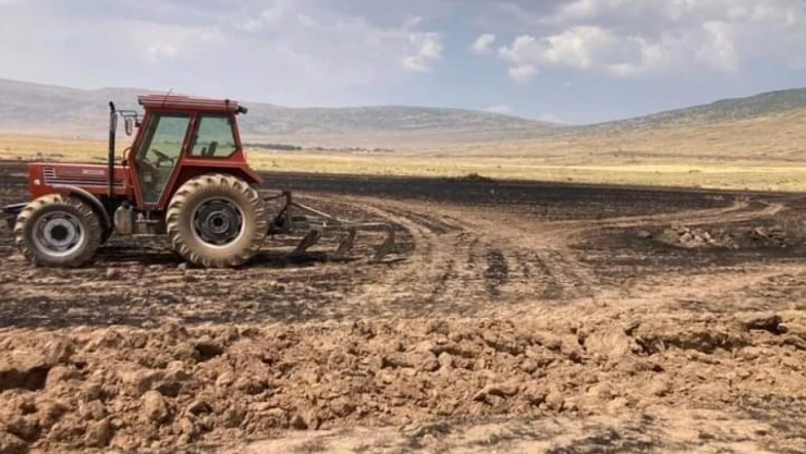 Biçerdöverle hasat sırasında çıkan yangında 4 hektar alan yandı
