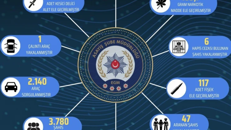 Bingöl İl Emniyet Müdürlüğü’ne bağlı Asayiş Şube amirliğince 2024 yılı Ocak ayı içerisinde yapılan çalışmalar açıklandı. Yapılan açıklamada, “2 adet ruhsatsız tabanca, 105 gram narkotik madde, 117 adet fişek, 3 kesici delici alet el geçirildi. Hapis cezası bulunan 6 şahıs, hırsızlık suçu faili 46 şahıs ve 47 aranan şahıs yakalandı. Aynı zamanda 3 bin 780 şahıs ve 2 bin 140 araç sorgulanırken bir de çalıntı araç bulundu” denildi.