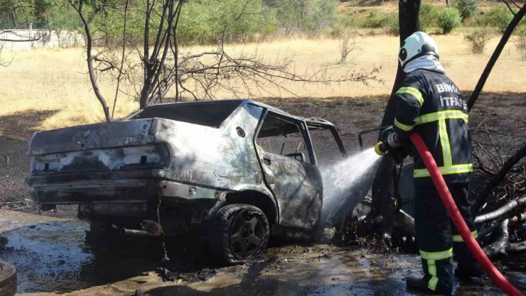 Bingöl merkezde kontrolden çıkan otomobil, kazanın ardından yanarak kül oldu.