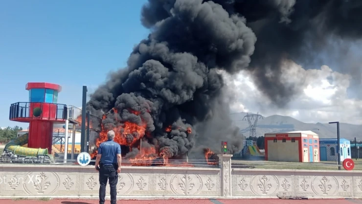 Erzurum'da henüz sebebi bilinmeyen bir şekilde, çocuk parkında çıkan yangın çevre sakinlerini korkuttu. Maket uçaktan geriye külleri kaldı.