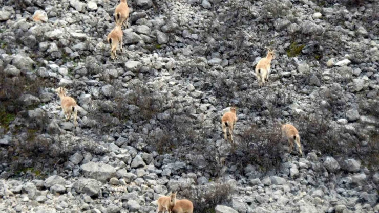 Yaban hayatının zengin olduğu Erzincan’da yaşamını sürdüren koruma altındaki dağ keçileri, zaman zaman yüksek noktalardan köylere yakın noktalarına kadar iniyor. Bu durumu fırsata dönüştüren vatandaşlar ve doğaseverler de ilgiyle izledikleri dağ keçilerini sürü halinde görüntüleme fırsatı buluyor.