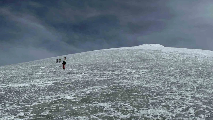 Ağrı Dağı’na tırmanmak için gelen bir grup dağcı, dağın eteklerinde kayak yaparak tırmanışlarına renk kattı.