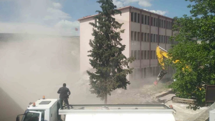 Depremde ağır hasar alan 56 yıllık kaymakamlık binası birkaç darbeyle yıkıldı