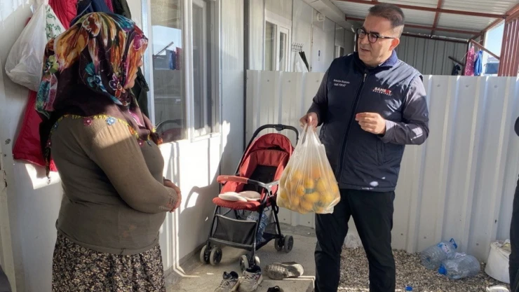 6 Şubat depreminde ağır hasar alan iller arasında bulunan Adıyaman’da, depremzede vatandaşların barındığı Vartana Prefabrik Evlere kamyonla limon getirten Samsat Belediye Başkanı Halil Fırat, bu limonları depremzedelere dağıttı.