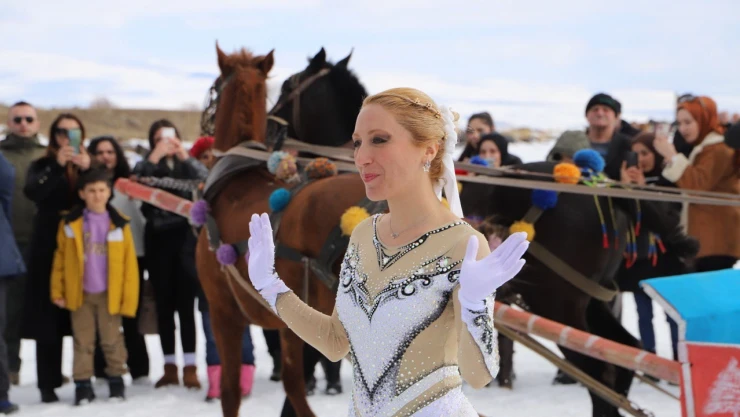 Artistik buz pateni dünya şampiyonu milli sporcuları Naz Arıcı ile Elif Sırma Özel, atlı kızak ve saz eşliğinde Çıldır Gölü üzerinde gösteri gerçekleştirdi.
