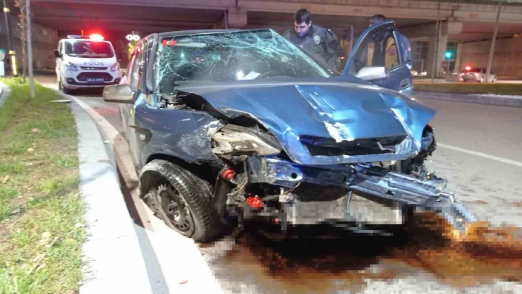 Duvara çarpıp 70 metre sürüklenen otomobil hurdaya döndü: 1 yaralı