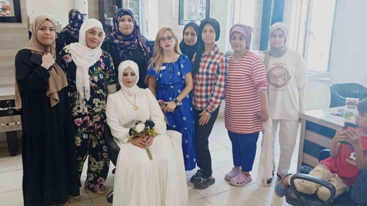 Şahinbey Belediyesi'ne bağlı Mimar Sinan Sosyal Tesisi'nde kuaförlük eğitimi alan kursiyerler maddi imknı olmayan gelin adaylarının saçlarını yaparak düğüne hazırlıyor.