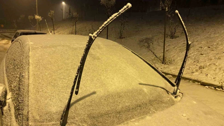 Elazığ’da etkili olan kar yağışı sonrası gece saatlerinde soğuk hava nedeniyle araçların camları buz tuttu.