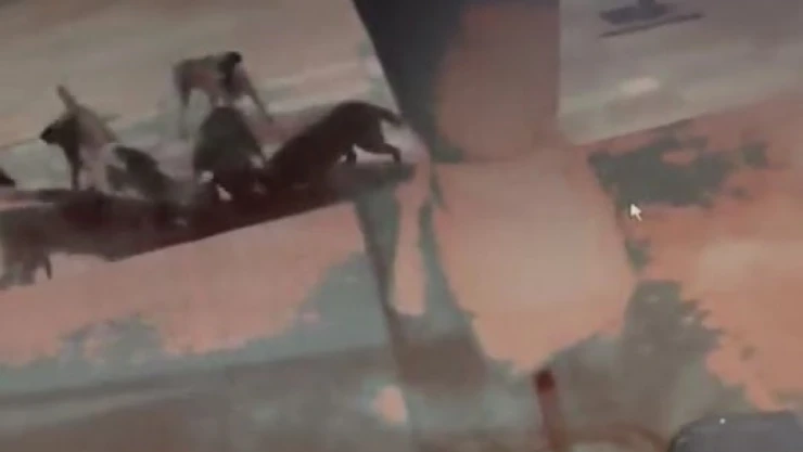Elazığ’da başıboş sokak köpekleri, boğazladıkları kediyi parçaladı. O anlar bir iş yerinin güvenlik kamerasına yansıdı.
