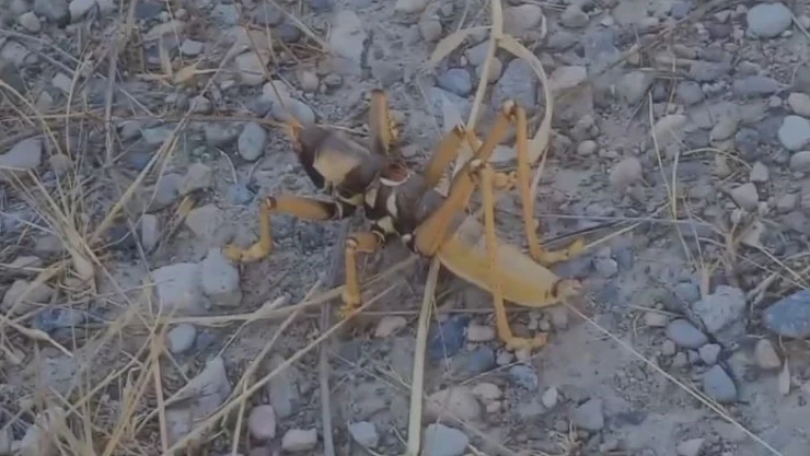 Elazığ’ın Baski ilçesi Aşağı Kuluşağı köyünde tarlada bulunan bir vatandaş, dev bir çekirge fark etti. İlk defa böyle bir çekirge gören vatandaş, internetten yaptığı araştırmada çekirgenin tarıma zararlı böcekleri yiyerek beslenen etçil bir tür olduğunu öğrendi.